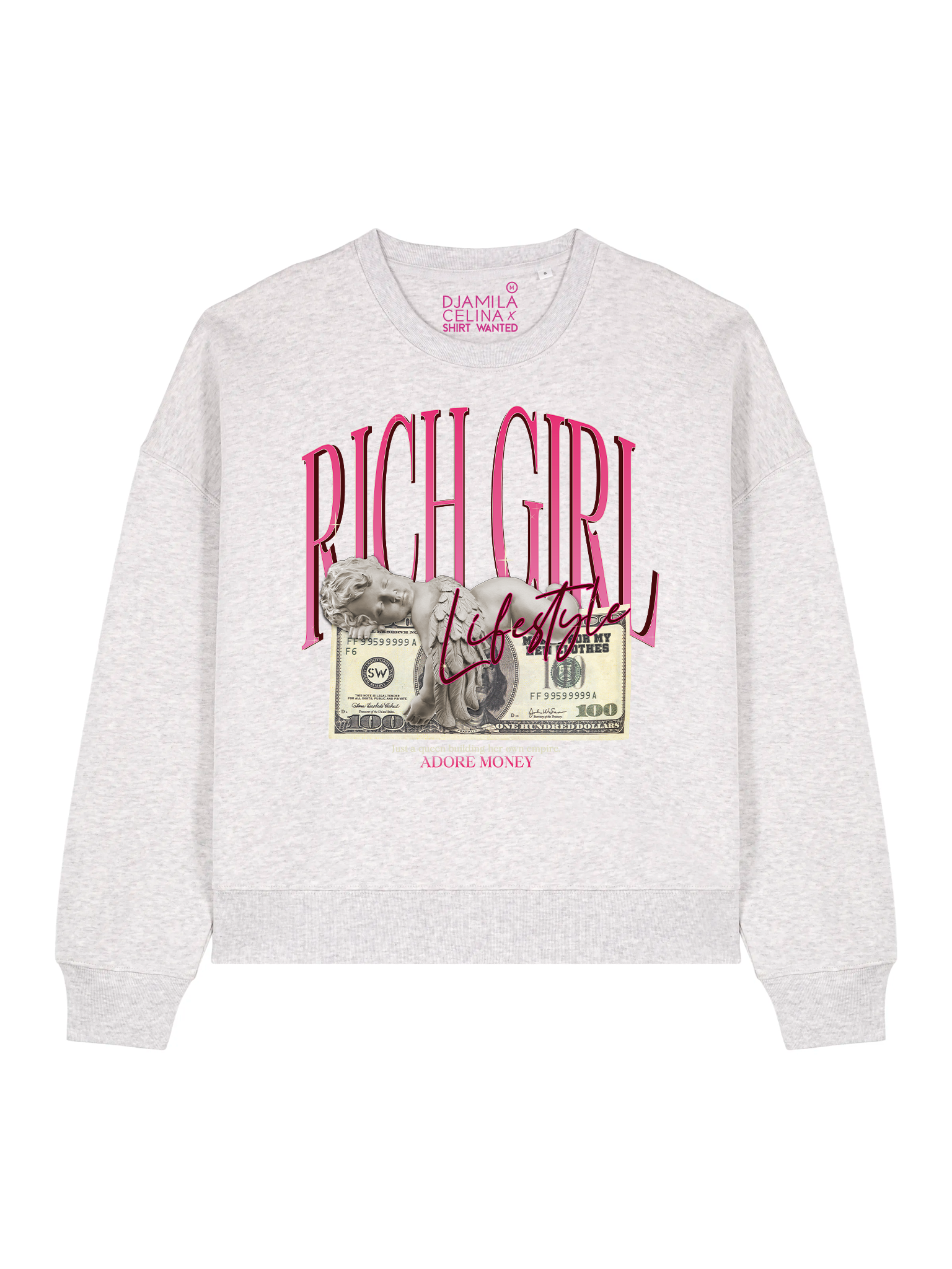 BOXY SWEATER DJAMILA CELINA RICH GIRL PRINT – HEATHER GREY