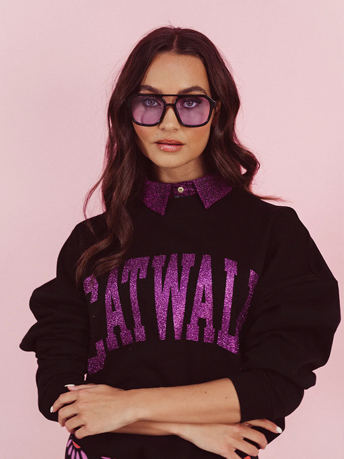 Step into a world of bold fashion with Djamila Celina’s black sunglasses, featuring striking purple lenses. Combining contemporary edge with a playful twist, these sunglasses offer a sleek black frame paired with vibrant purple lenses for an eye-catching look. The modern design adds an ultra-trendy vibe, perfect for making a statement wherever you go. Whether you’re hitting the city streets or enjoying a sunny day out, these sunglasses provide both style and sun protection with a fresh, fashionable flair. With their lightweight construction, these sunglasses ensure comfort for all-day wear. The vibrant purple lenses not only enhance your look but also offer excellent clarity and contrast, perfect for bright, sunny days. Versatile and chic, these sunglasses are a must-have accessory to elevate any outfit.