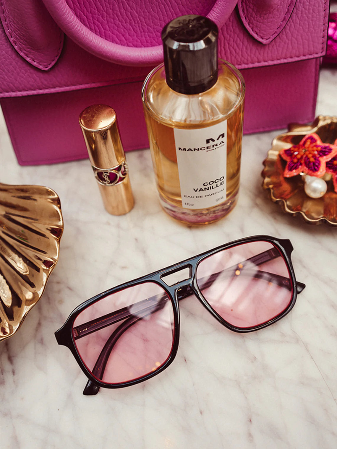 Make a statement with Djamila Celina’s edgy and playful Noir Rose Party sunglasses! Featuring a bold black frame and striking pink lenses, these sunglasses are the ultimate accessory to elevate your festival or party look. The sleek black frame adds a touch of boldness, while the pink lenses bring a fun, vibrant vibe. Perfect for those moments when you want to stand out and complete your outfit with a trendy, eye-catching finishing touch.